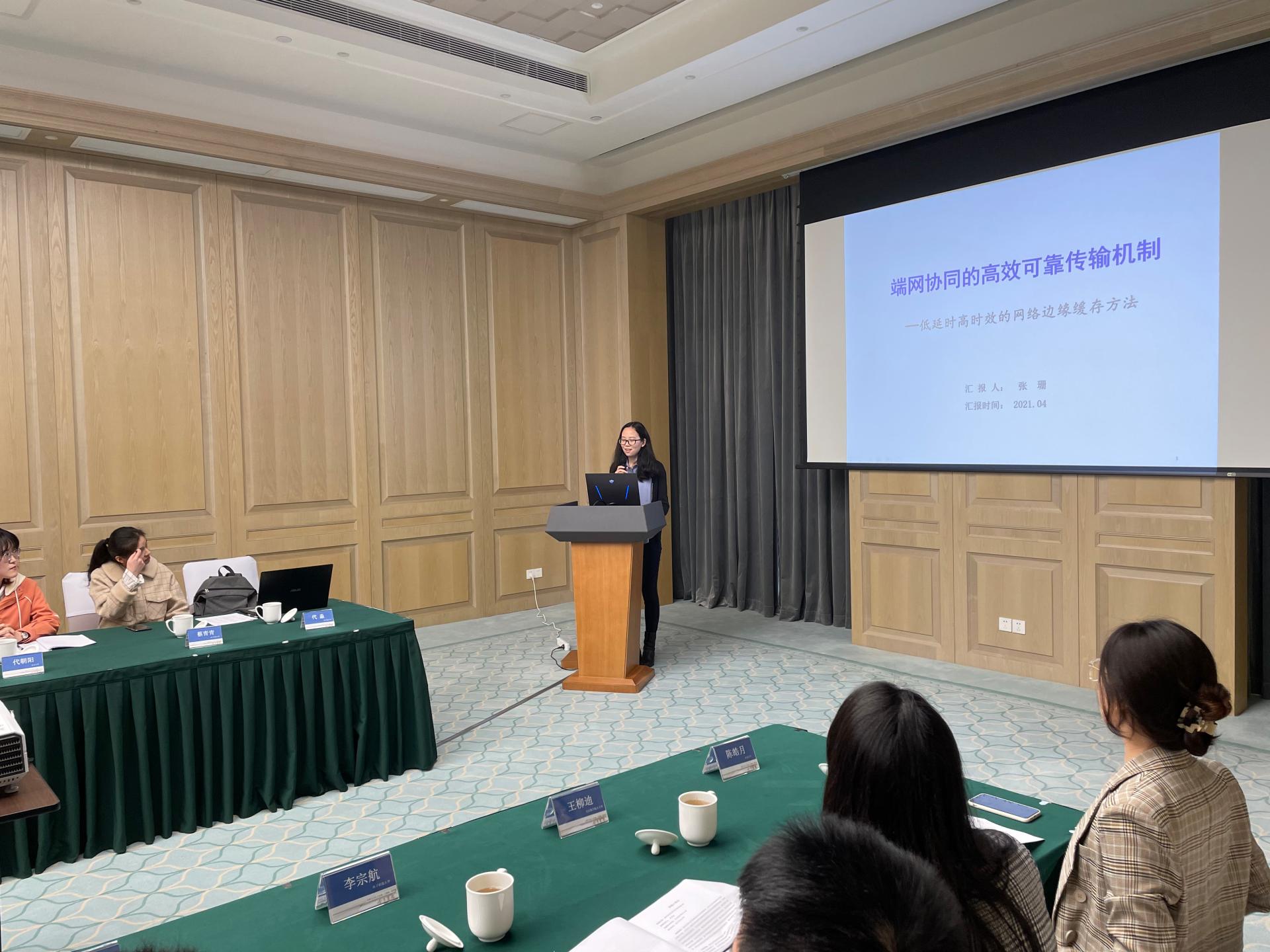 第三部分,北京航空航天大学张珊副教授作题为“低延时高时效的网络边缘缓存方法”的学术报告。该报告研究了在人、机、环境三元深度融合的5G/B5G时代下端网协同的高效可靠传输机制,设计了分级缓存架构,并在时空二维动态优化缓存内容,提出了基于AI网络状态感知设计缓存系统更新方法。最后,报告总结了北京航空航天大学在课题三研究的进展,并指出目前研究的薄弱环节作为今后工作推进的重点。