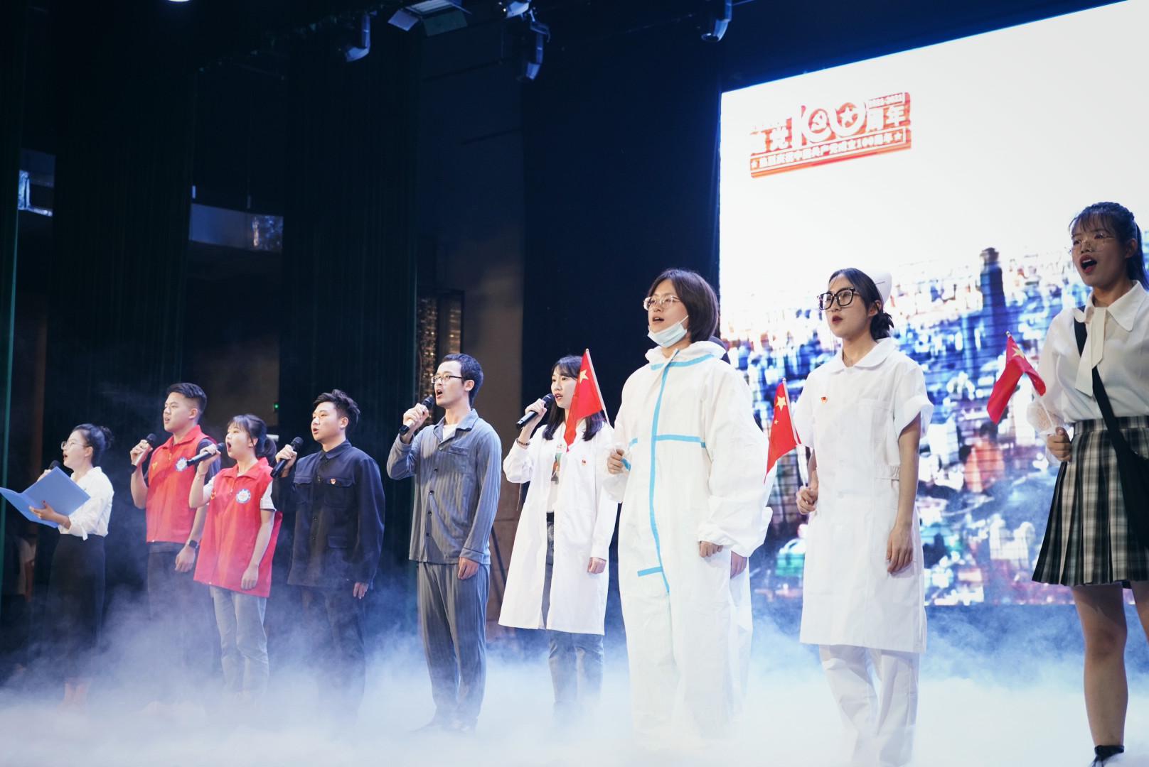 在比赛中,公司学子声情并茂地表演,用战“疫”中的平凡故事向不平凡的每一位抗“疫”勇士致敬。同学们用动情的表演、感人的台词展现了中华民族在疫情面前一往无前的决心和勇气。在党的带领下中国人民必将战胜一切困难,迎来胜利的曙光。
