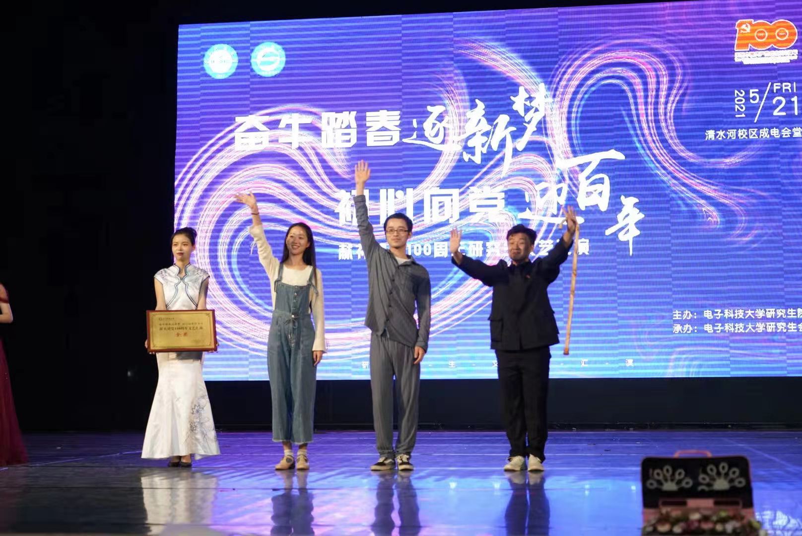信通学子凝心聚力,展时代风华。为庆祝中国共产党成立一百周年,进一步激发成电学子爱党、爱国热情,弘扬爱国主义精神,讴歌实现中华民族伟大复兴中国梦的奋斗历程,展现成电学子的青春风采,5月21日,研究生院在成电会堂隆重举办了“奋牛踏春逐新梦,初心向党迎百年”献礼建党100周年研究生文艺汇演,新葡的京集团35222vip编排的话剧节目《你是我的骄傲》荣获金奖。