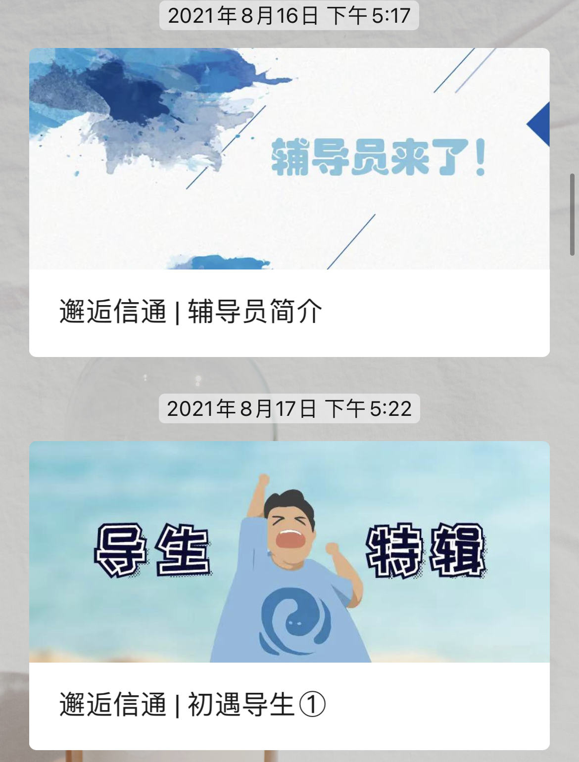 新生名单公布后,辅导员第一时间分好班级,并将班级名单交予导生,由导生负责联系各班员工,加入年级群和班群。为了减轻新生家长面对孩子离家的忧虑,辅导员特意创建微信家长群,及时解答家长疑问。公司官方微信公众平台“信通E家”推出“邂逅信通”主题系列推送,内容涵盖班主任、辅导员和导生介绍,新生入学指南以及新生风采展示等多个方面,带领新生领略大学初印象。此外,公司面向新生们举办以建党百年为主题的“新生达人秀”,鼓励同学们结合党史、脱贫攻坚、抗疫、抗洪、奥运等各类话题,利用假期时间,通过文字、绘画、摄影、发明制作等形式进行创作,并在公司官微展示优秀作品。