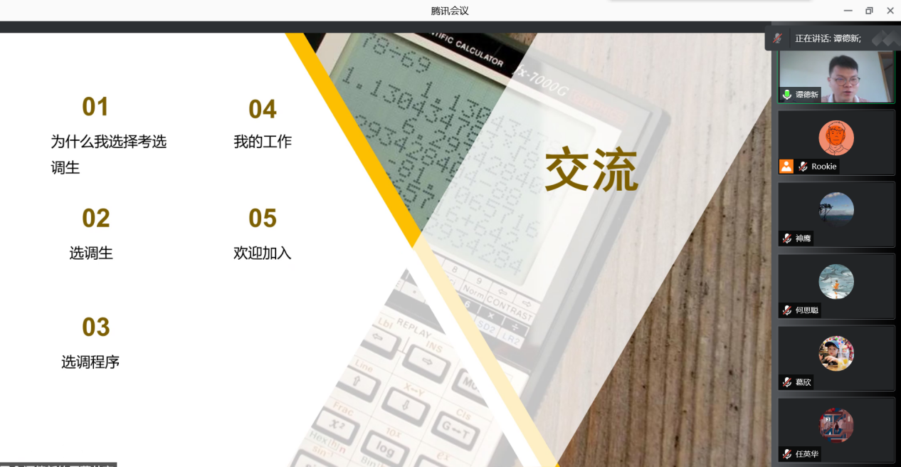 交流中,谭德新介绍了选调生的种类、选调资格,并结合自身经历提醒学弟学妹们在选调生面试时做好充分的准备,重视礼仪、着装等。对于选调生的备考,谭德新认为假如想参加紧缺选调考试,学弟学妹们可以尽早开始准备。一篇精彩申论的根本是因为作者研读参透了习近平新时代中国特色社会主义思想,谭德新建议学弟学妹们多读、多写、多悟,就能写出让阅卷者满意的答案。参加工作后,谭德新坦言还是很怀念校园生活,还想再回去吃一次食堂的早饭、再去图书馆看一次书。在机关,陪同检查、巡查企业,写各类文件总结、写讲话稿等工作,谭德新如今都已经逐渐适应了。