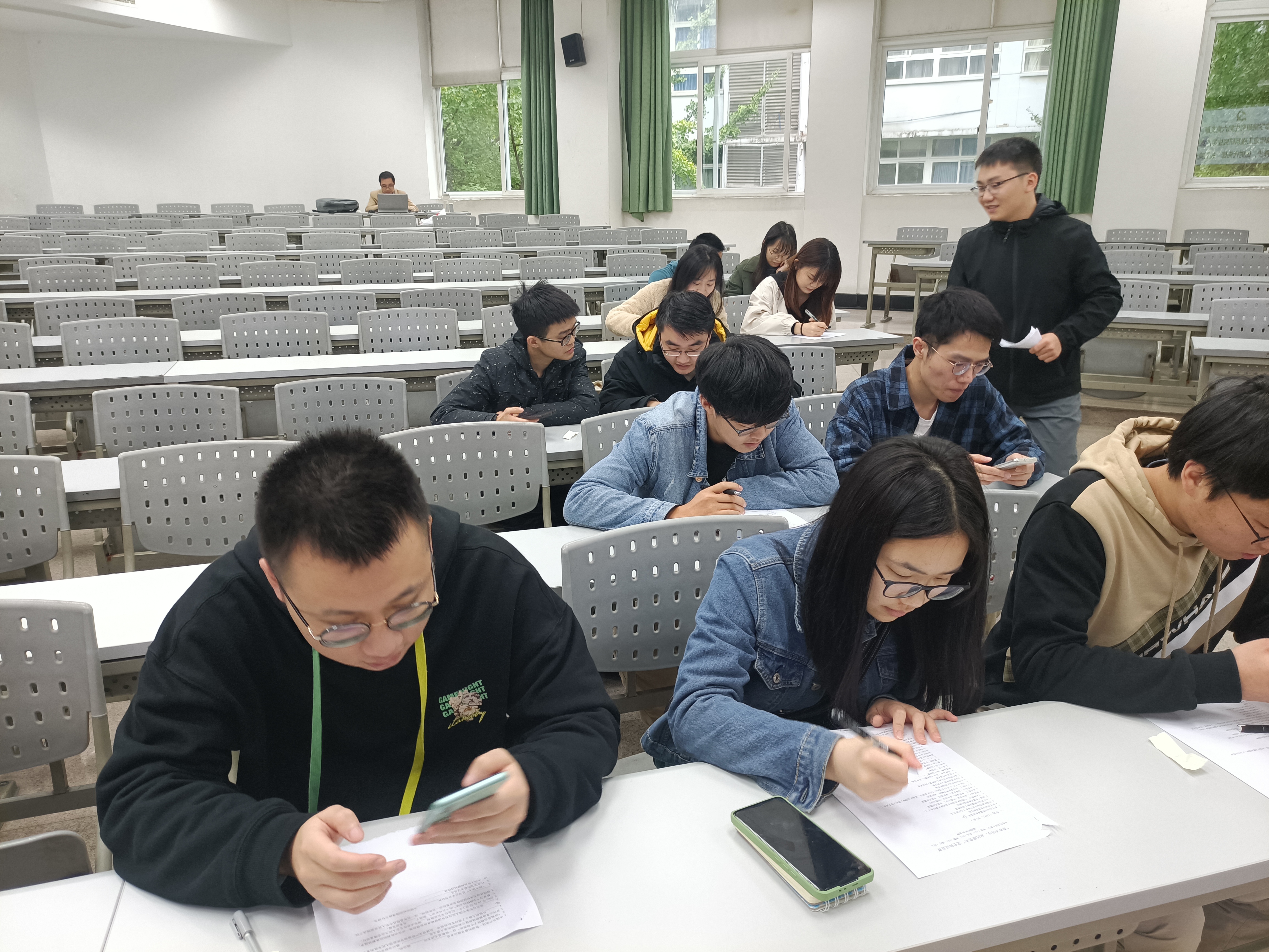 “青春不停步,做时代先锋”知识竞赛活动形式为分组线下答题,共包含50题、满分100分。竞赛题目内容参考《习近平新时代中国特色社会主义思想学习问答》、《中国共产党简史》等党史学习教育书目,以中国共产党建党百年来的革命史、新中国史、改革开放史、社会主义发展史为主,丰富了学习资源,拓宽了党史知识面。答题开始前,参与答题的所有同学通过随机抽签的方式分为7组。最终按照得分高低顺序排名,得分相同提交答案优先组排名靠前,限定时间30分钟,最后按排名依次颁发一二三等奖。经过激烈讨论,各小组仅用了原定时间的一半就完成了答题。