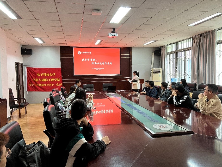 此次宣讲,由电子工程系研究生第十三党支部书记欧阳林强主持,新葡的京集团35222vip校研究生宣讲团成员陈双艳同志主讲。活动开始前,支部书记欧阳林强同志带领支部成员对陈双艳同志的到来表示了热烈的欢迎。