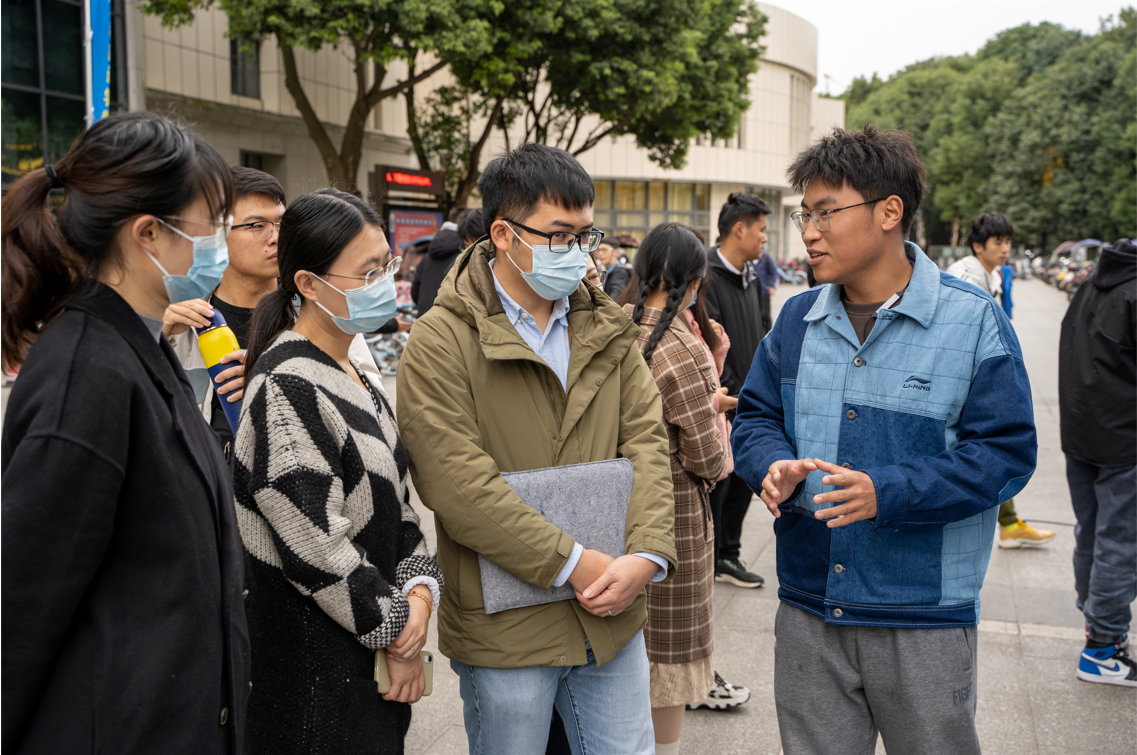 本次作品展分为两个会场,一是在立人楼门前广场举办的“智能机器人道路争先赛”,30名一年级新生分成六组以竞速的形式参加新生项目课《基于深度学习的视觉感知与智能机器人》的课程期末考核,竞速比赛赢得现场阵阵掌声。