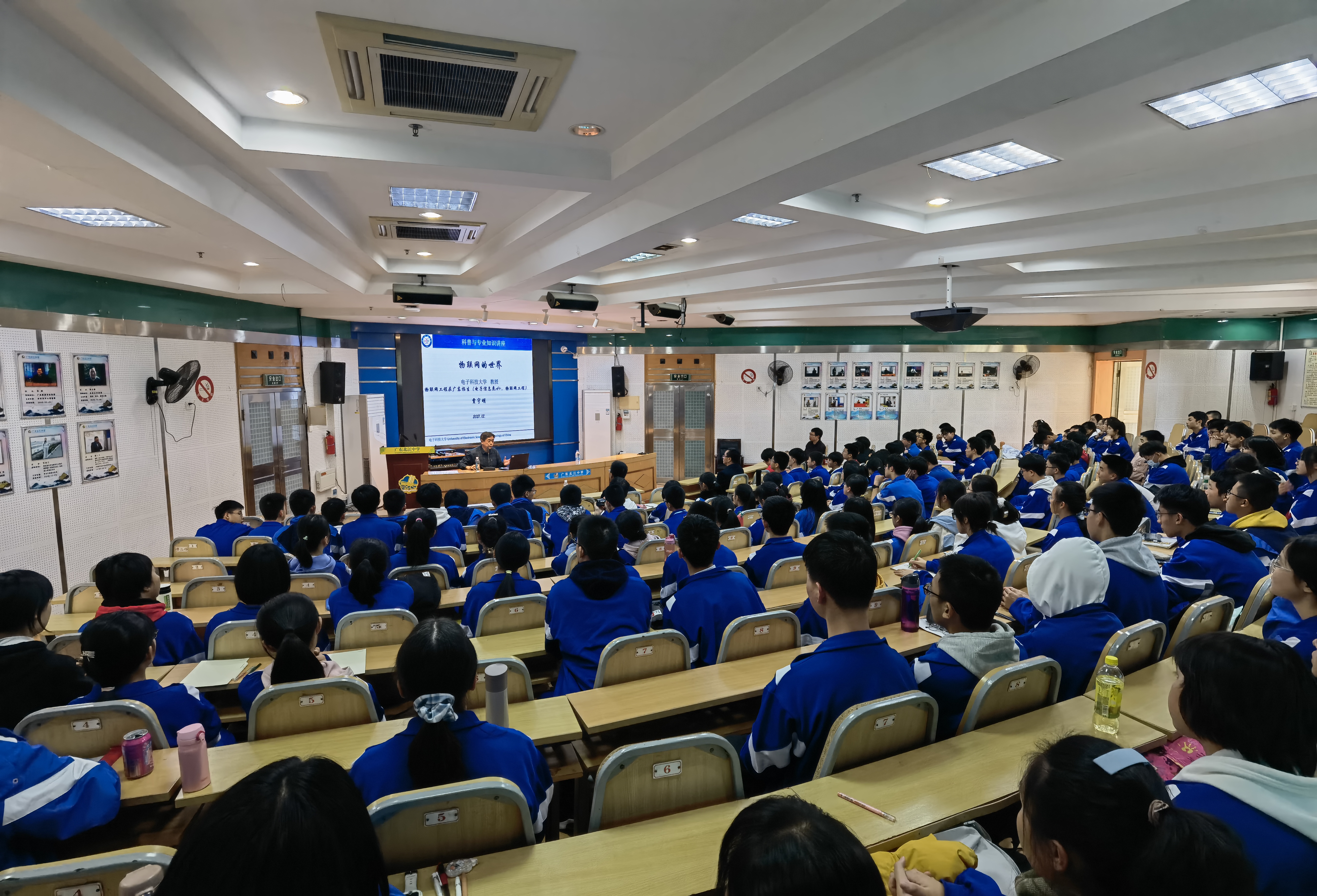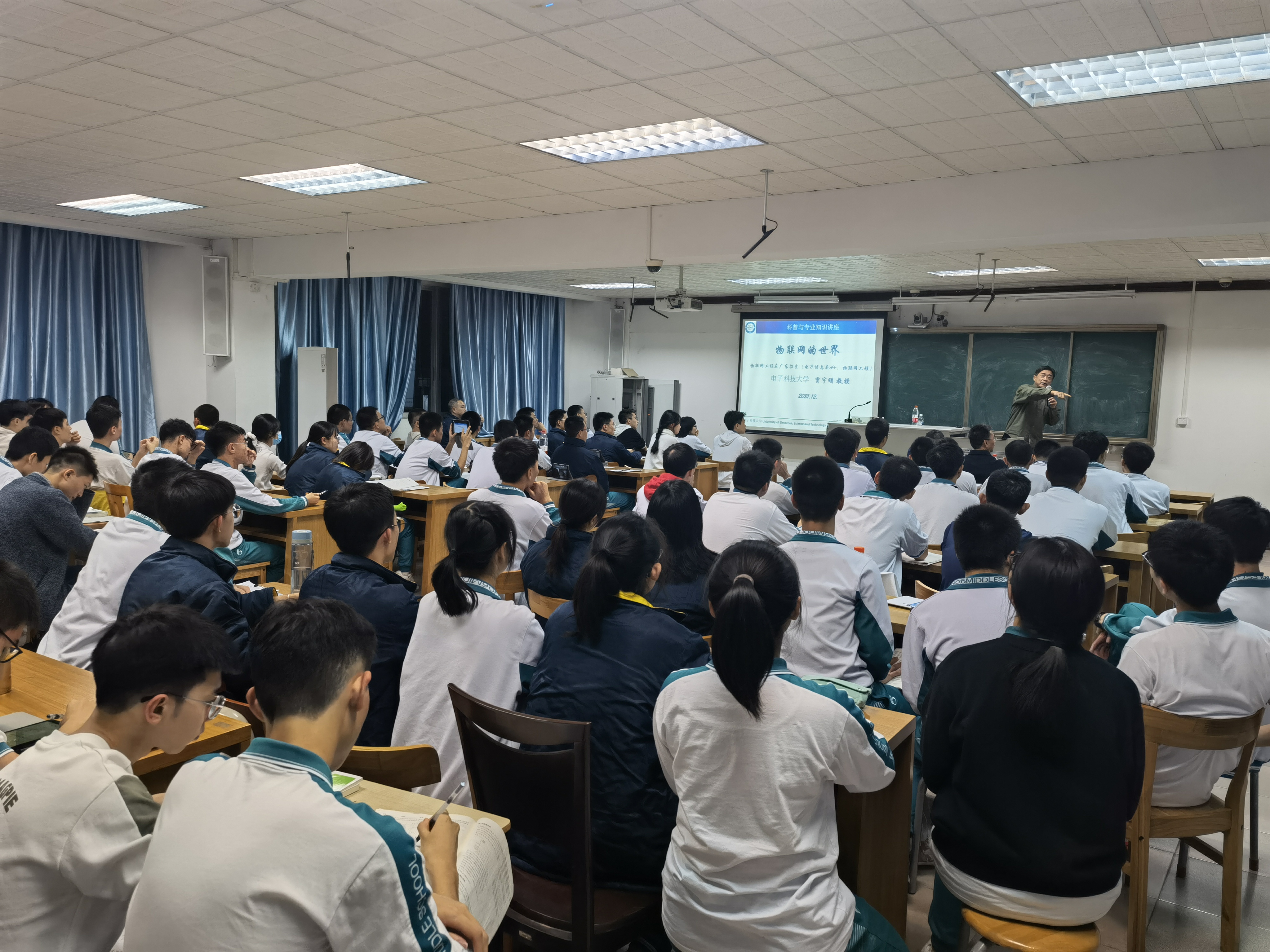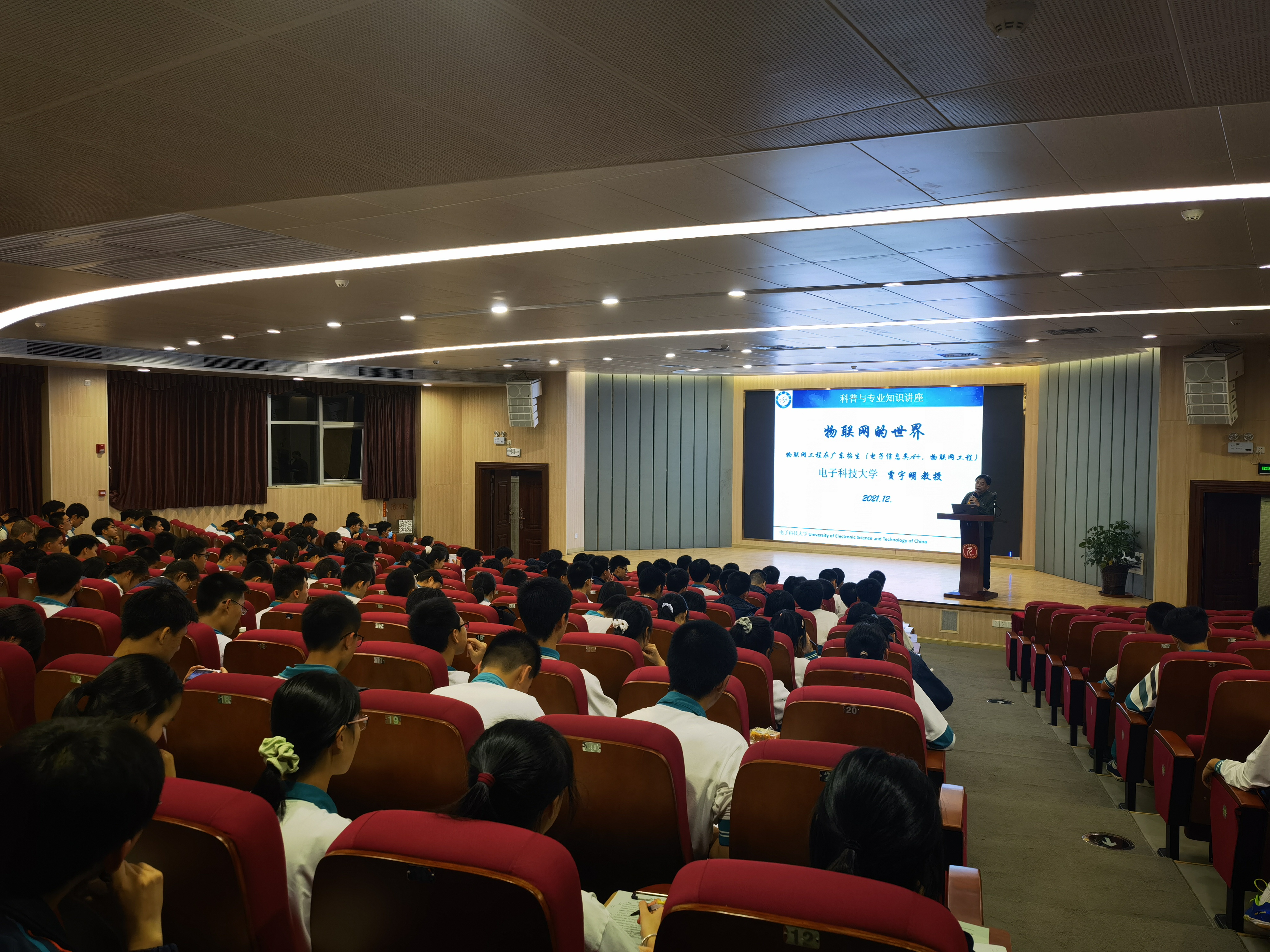 公司广东省招生工作组组长、科普讲座优秀主讲专家贾宇明教授分别为深圳市龙华高级中学等五所中学师生做了题为《物联网的世界》的科普讲座,贾教授深入浅出地分析了物联网发展历程及实际应用,并对未来发展进行了展望。在讲座中,贾宇明教授从国家层面的科技规划出发,指出物联网技术是新一代信息技术的重要内容,并从“什么是物联网”“物联网的特征”“物联网与其他信息技术的关系”“物联网的现实应用”等多个方面进行了细致讲解,并就当前我国物联网技术及相关应用的发展水平和趋势进行了简要概括,同时鼓励在座的同学们努力学习、培养兴趣,争取考入新葡的京集团35222vip,为我国新一代信息技术的发展做出贡献。科普讲座后,招生工作组李波老师现场播放了公司的官方宣传视频,并结合公司招生宣传PPT,从人才培养、专业设置和国际交流等方面对公司进行全面介绍,并就现场师生提出的问题进行了细致解答。