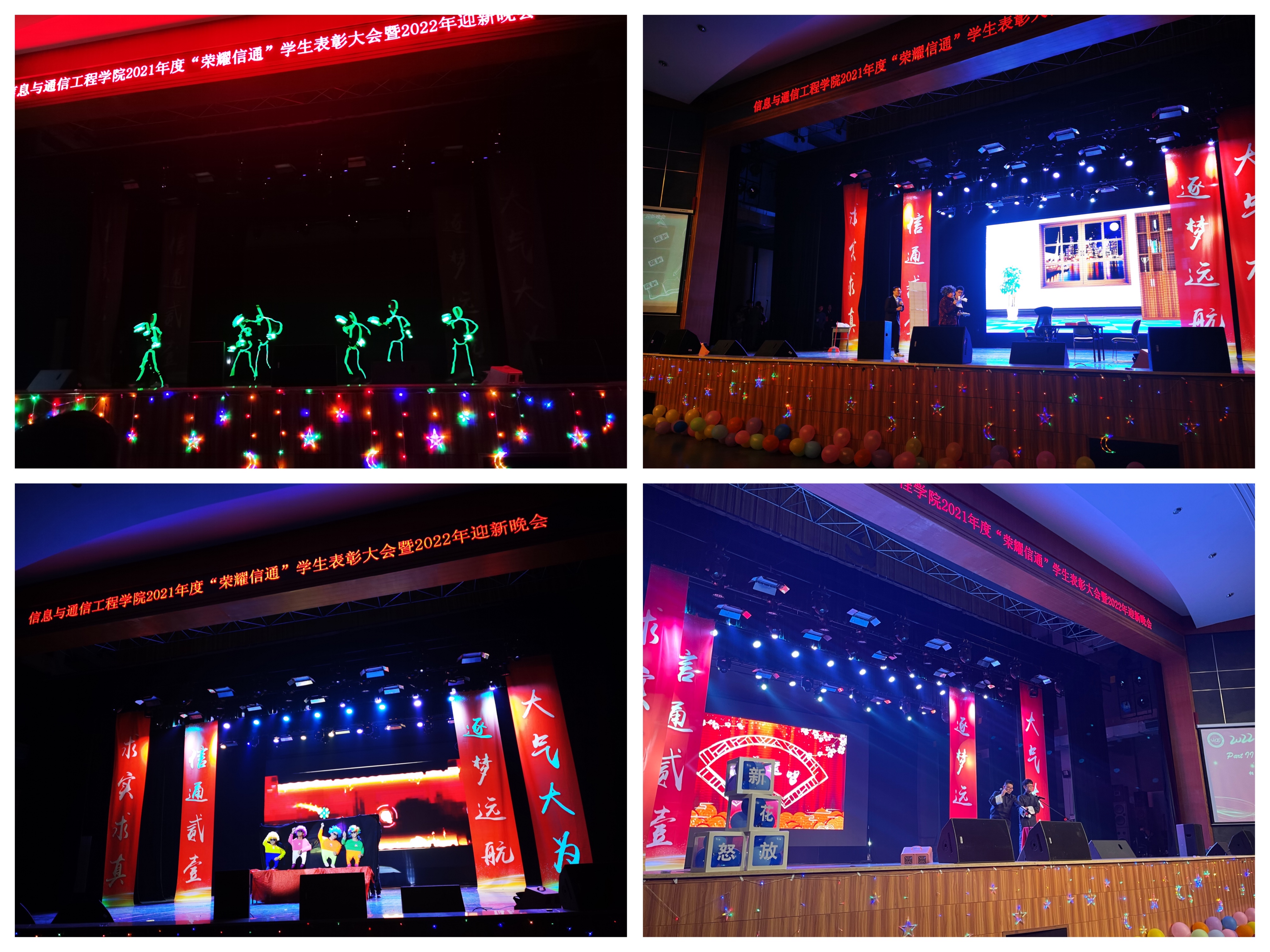 表彰大会结束后,举行了公司2022年“新花怒放,有信同行”迎新晚会。开场秀歌曲《What is love》唤醒了同学们的回忆,点燃了现场的气氛。2021级各班精心准备的丰富多彩的节目为同学们带来了一场视听盛宴,辅导员和导生带来的歌舞《想见你想见你想见你》将晚会推向高潮。同学们热情高涨,观众席不断传来掌声和欢呼声。晚会在抒情的《难忘今宵》中圆满结束。同学们的歌声里不仅充满着欢声笑语,还有对2021年崭新的起点的无限期待。多才多艺的信通新青年用精彩的节目传递青春正能量,迎接新一年的挑战和奋斗。