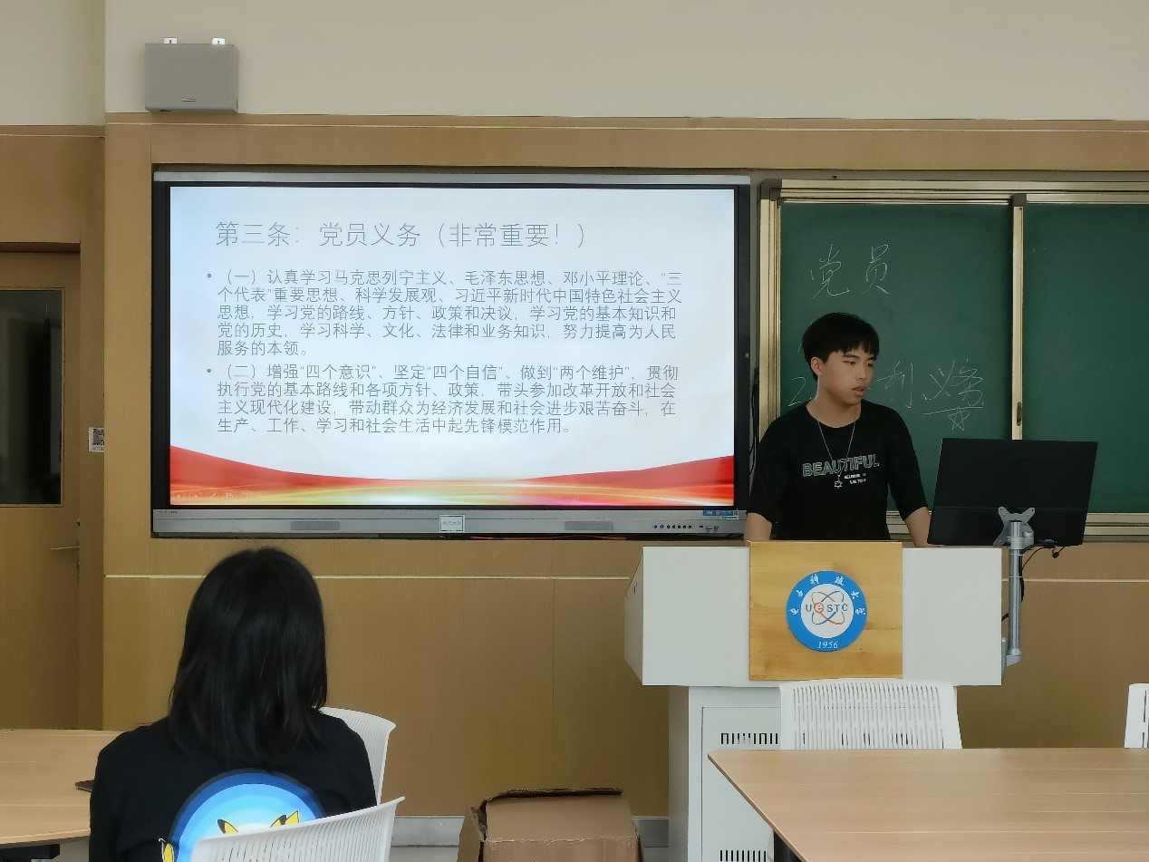 之后彭帆同学带领积极分子们一起学习党章,重点学习了“党员的义务和要求”章节。彭帆同学对于党章作了详细的讲解,举了很多例子,言简意赅,通俗易懂,使大家对于党员的职责和使命有了一个更清晰的了解。