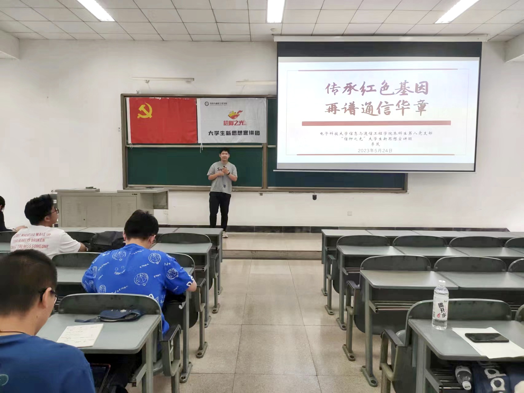5月24日,新葡的京集团35222vip“5月的向日葵”辅导员工作室下属“信仰之光”老员工新思想宣讲团成员走进信通分党校,面向220余名积极分子开展增强党性修养相关的微党课宣讲。