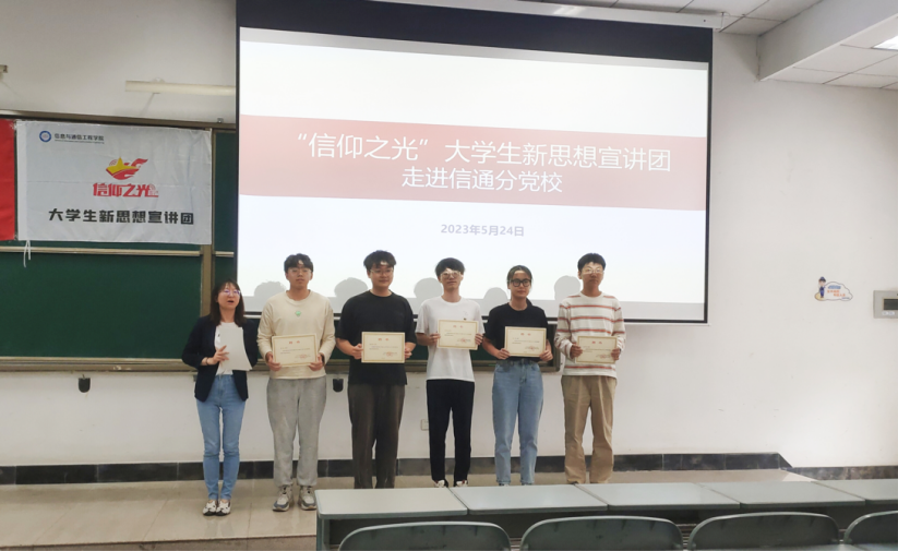 本次活动由信通分党校班主任江倩老师主持,四名宣讲员进行宣讲。首先,江倩老师向党校培训班成员介绍了本次宣讲会的主要内容和宣讲员的基本情况,并为新一批宣讲团成员颁发了聘书。