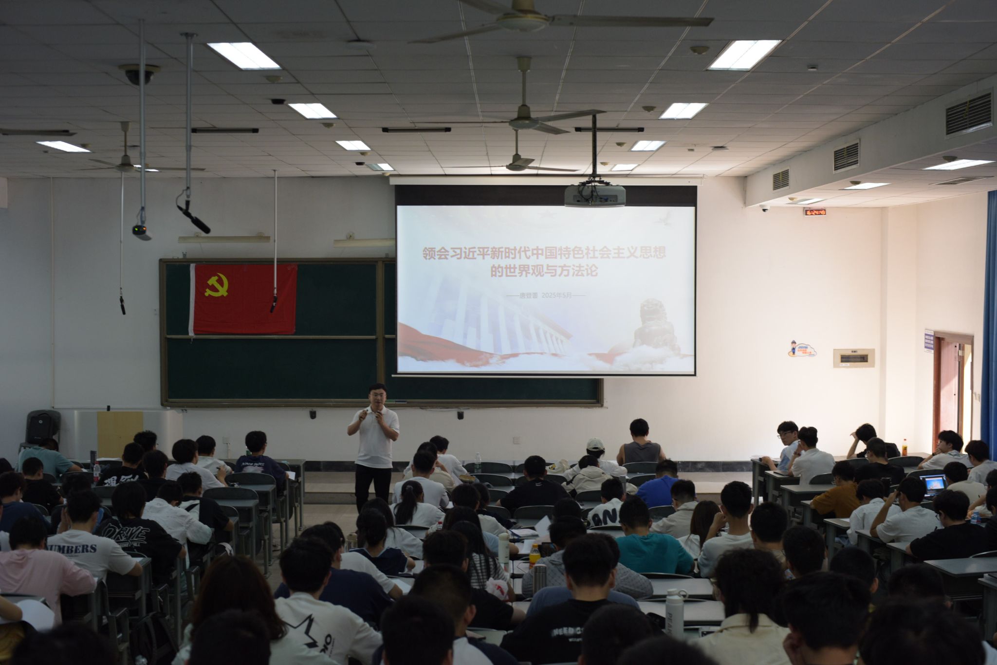 此次专题辅导报告以“领会习近平新时代中国特色社会主义思想的世界观与方法论”为题,就习近平新时代中国特色理论思想的形成背景、核心内容与现实指导意义进行了系统讲解,结合国内外政治经济形势,引导同学们深入思考国家发展、社会制度与个体命运之间的关系,帮助大家理解党的创新理论如何回应时代命题、引领中国道路。
