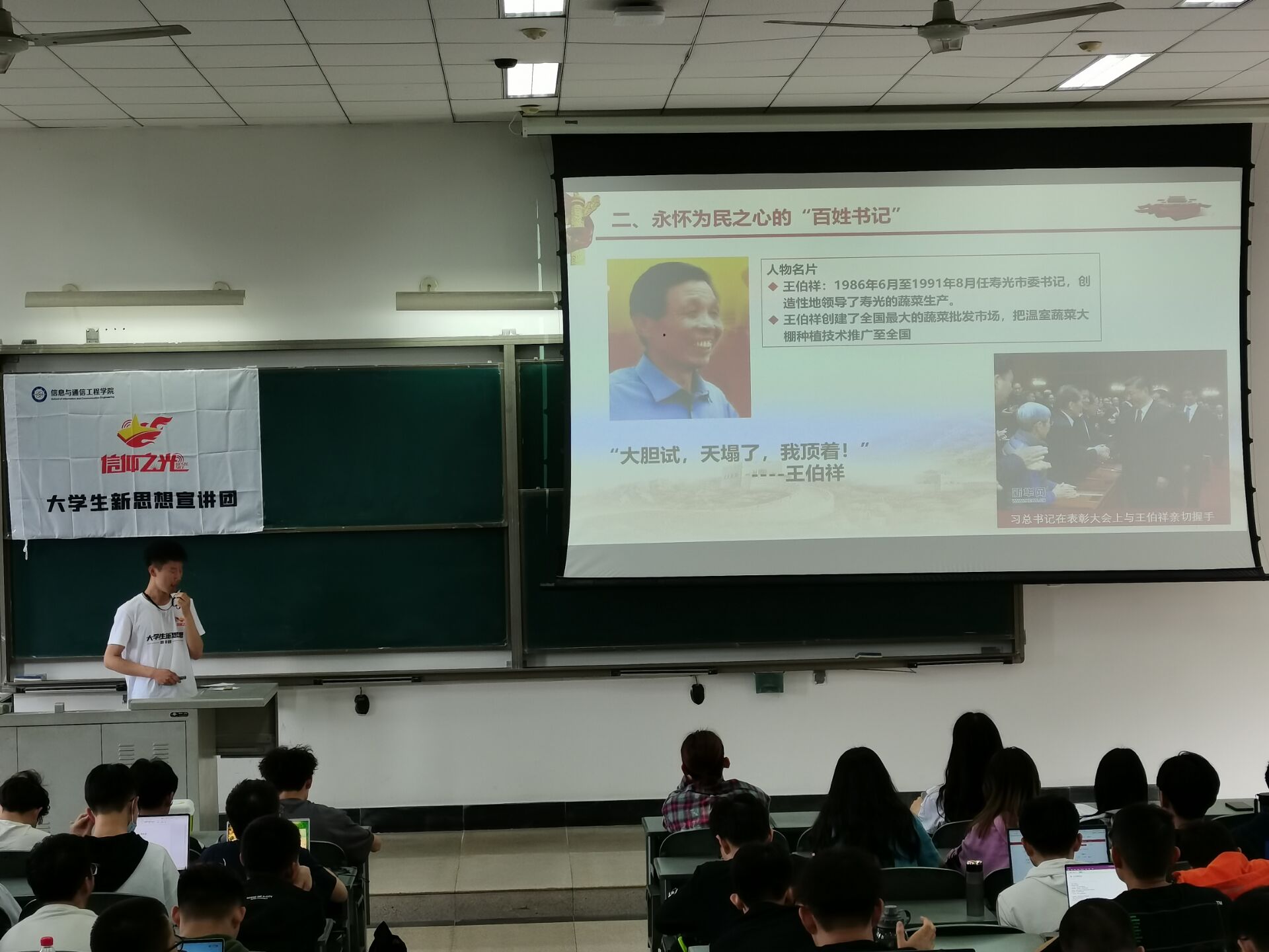 如今第七党支部已经有三名同学入选公司老员工骨干宣讲团,8名同学被聘任为公司“信仰之光”老员工新思想宣讲团的成员。5月6日,支部孙美琪和张浩天同学面向公司党校培训班积极分子带来了微党课宣讲,将党的思想和党员的先进性在广大同学中传播。