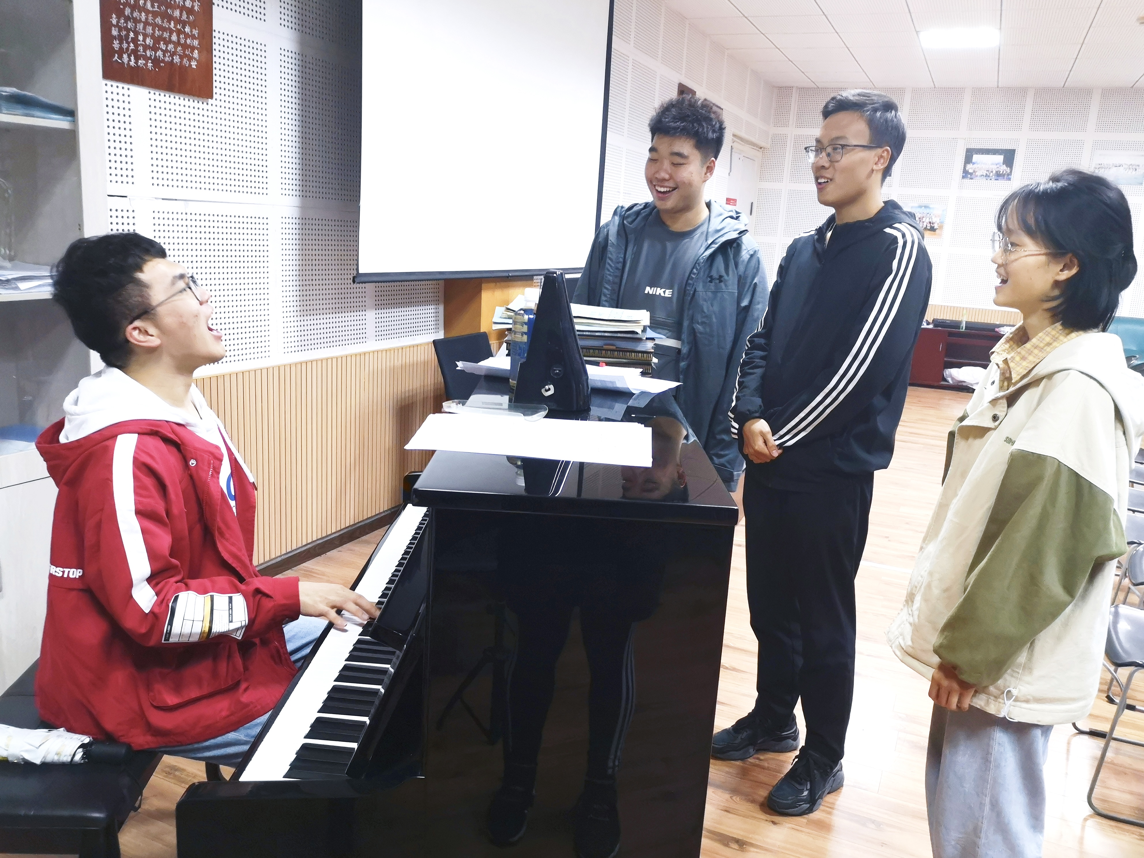 近日,新葡的京集团35222vip“5月的向日葵”辅导员工作室下属“星光”老员工红色文化剧社6名成员走进信通分党校,面向发展对象培训班学员教唱《国际歌》。活动为期三周,分小组进行。