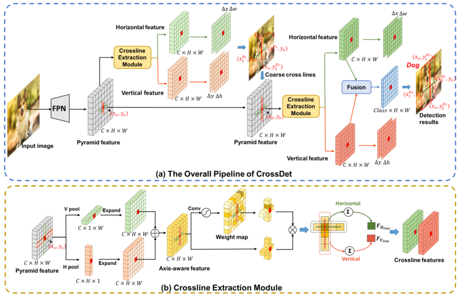 在比赛中,邱荷茜和队友们考虑到目标在雷达成像中为条状,因此设计了一种“十字线”目标检测算法,即通过X轴和Y轴的两条线的伸缩与延长,从而灵活地检测目标位置。邱荷茜灵机一动,将此种框架迁移至现实场景进行了研究,竟发现这种框架既不复杂,同时又具备很好的性能。