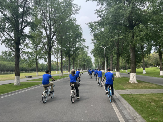 下午,员工们来到清水河校区,睹母校新颜,关心关注公司新发展。员工一行集体骑行在校园内,感受新校区的一抹盎然绿意。