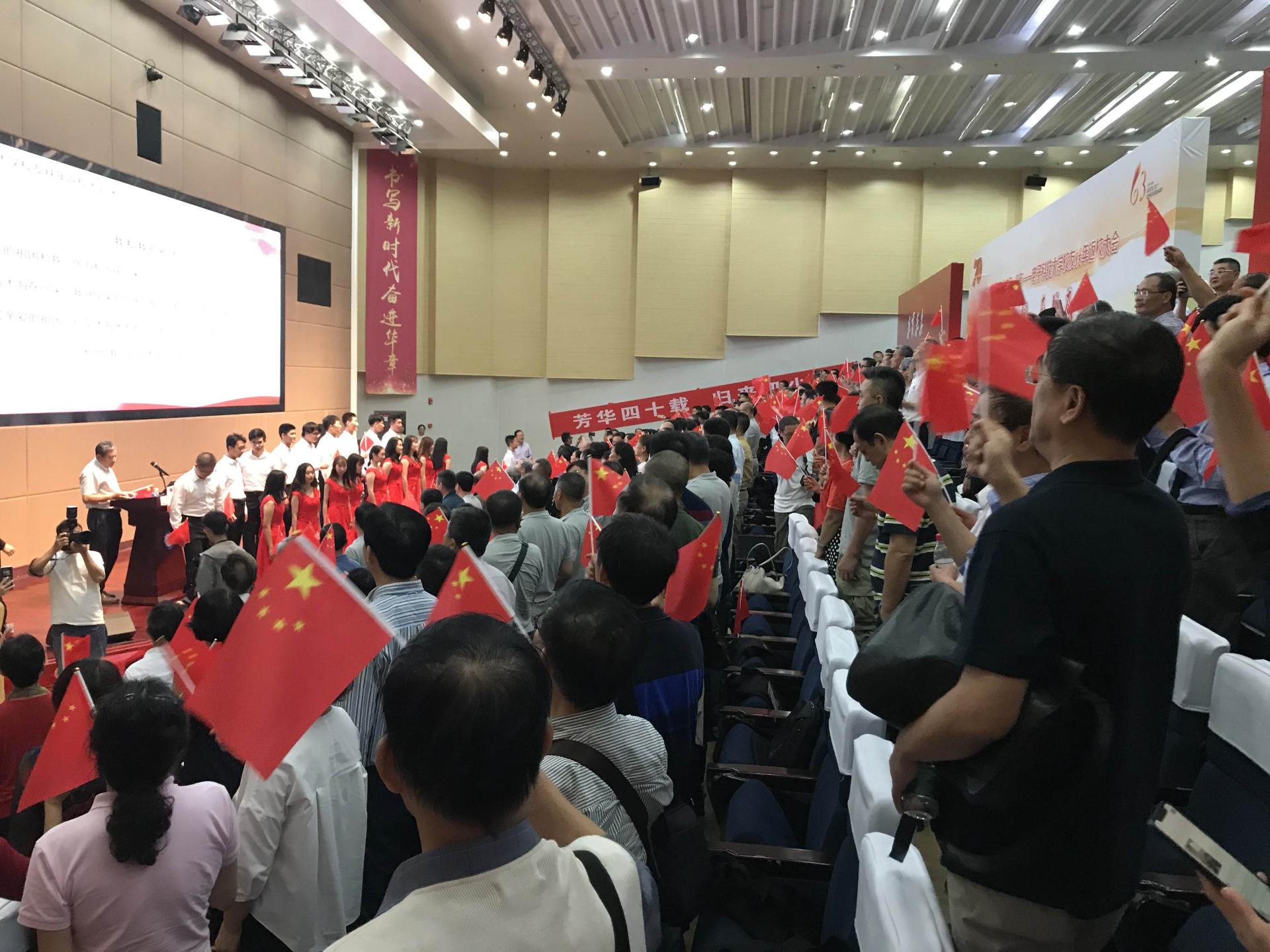 16:00,员工们参加了公司校庆秩年返校大会。会议开始前,公司送给员工们一段珍贵怀旧视频,记忆中的场景再现,掌声、欢笑声不断。王亚非书记致辞并介绍了公司情况,吴飞舟等员工作为代表进行了发言;公司员工在会上朗诵了同学为公司写的诗歌,表达了对母校的无限深情。员工代表向当年的任课老师们献上的感恩鲜花。大会在师生合唱《我和我的祖国》中落下帷幕。